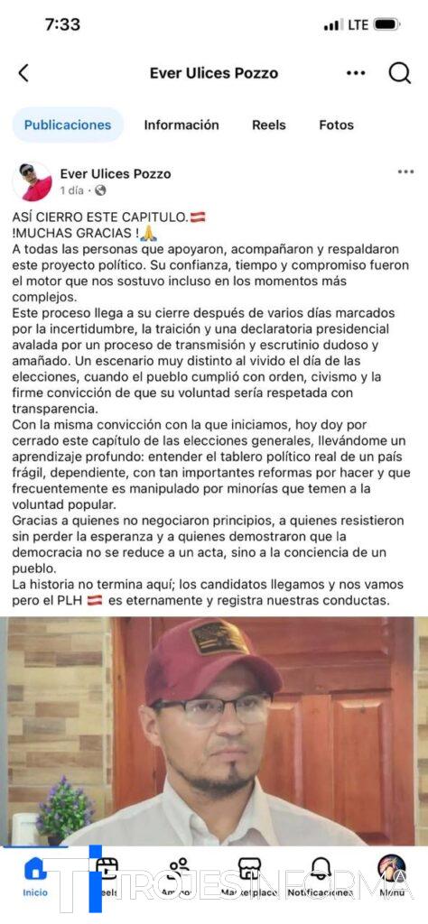 Tras conocerse los resultados del proceso electoral, Yonys Sevilla, candidato del partido Libertad y Refundación (Libre) a la Alcaldía de Trojes, y Ever Ulises Pozzo, candidato del Partido Liberal, se pronunciaron públicamente a través de sus redes sociales.